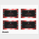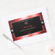 The design features a noble shimmering red frame with fine decor lines, on a plain black background.