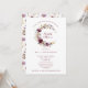 This wedding invitation stands out for its exquisite and romantic design, featuring a garland of flowers and botanical elements in burgundy tones that create an elegant and sophisticated visual effect. The combination of floral details with refined typography conveys harmony, delicacy, and timeless charm, evoking outdoor weddings, spring gardens, and settings bathed in soft natural light.