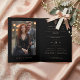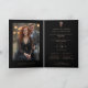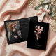 This design features an elegant and refined Christian cross with a metallic rose gold effect on a deep black background, highlighting the luminosity and shine of the cross while adding a sophisticated and sacred touch to the invitation. The cross is harmoniously integrated into a classic design, creating a visual frame that conveys solemnity and beauty. The folder-style card allows for a photo inside, emphasizing a personal and meaningful detail for the couple while maintaining a minimalist and elegant exterior.