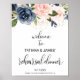 This exquisite fall floral rehearsal dinner welcome poster is perfect for a tropical rehearsal dinner. The design depicts hand-drawn pink blush, dark blue and navy whimsical flowers, inspiring elegance, class and natural beauty.