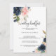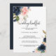 This exquisite fall floral wedding breakfast invitation is perfect for a simple family and friends get together wedding breakfast. The design depicts hand-drawn pink blush, dark blue and navy whimsical flowers, inspiring elegance, class and natural beauty.