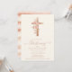 Exquisite Rose Gold Glitter Delicate Floral Christian Cross Romantic Style Christening Invitation Cards.