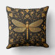 Exquisite Golden Dragonfly with Floral Art Cushion