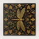 Intricately detailed golden dragonfly with elegant floral embellishments on striking black. Stunning design showcasing artistic craftsmanship with bold contrast.