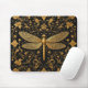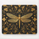 Exquisite Golden Dragonfly with Floral Art Mouse Pad