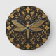 Exquisite Golden Dragonfly with Floral Art Round Clock
