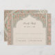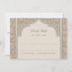 This RSVP card is a work of art, blending the timeless elegance of Islamic architectural motifs with the grace of traditional calligraphy. The design boasts an exquisite archway, flanked by patterned columns and a captivating scrollwork that frames the space for guests to respond. Presented in a harmonious colour scheme this card is both a respectful nod to tradition and a sophisticated choice for modern nuptials. Each element, from the ornate florals to the geometric chevrons, is thoughtfully placed, creating a sense of balance and beauty that is sure to delight recipients and set the tone for a day of joyous celebration.