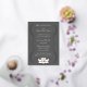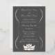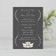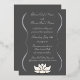 Add an air of serenity to your wedding or special event with these invitations featuring a pewter grey background and an elegant foil printed flourish frame holding all the details of your big day that can be customised to fit your needs, with a white lotus blossom sitting below. A white lotus flower add a pleasant final touch to the back. This invitation will match with any other Exquisite Lotus in White product so that you can easily make your event as coordinated as you desire.