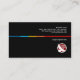 Design features an elegant black as a background cover. There are two sets of accentuating columns with five colourful colours each at the top portion and floor of the card. This top colourful tab plays host to your name and job title. Right below are four white buttons that have all your contact details. Towards the right of this, is your logo option. The same colourful tab encapsulates the base of the card. Overleaf, you get the same design theme where you will notice that the column is now a colourful line with the same colours. Above this line, at the right wall, you will find your business details. Right below is your slogan-tagline option for you to personalise your card. You have another optional logo at the same location ; If you so wish to download your photo, the dimensions are 1,000 x 1,000 pix. This is a simple great card for everyone to use. Elegant, striking yet bold and youthful.