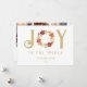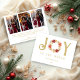 This Christmas design showcases an exquisite composition in deep red tones combined with delicate faux gold accents, creating a warm, festive, and refined aesthetic. The word Joy becomes the focal point, with the letter O elegantly transformed into a Christmas wreath that integrates naturally into the text, resulting in a balanced, modern, and visually striking piece. Subtle faux glitter effects add a soft shine that enhances the overall look without overwhelming it, ensuring a consistently elegant presentation. The back layout includes space for three customizable photos, allowing you to add special memories and turn the card into a personal and meaningful keepsake.