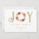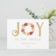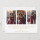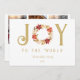 Exquisite Red Tones and Faux Gold Christmas Wreath Holiday Cards with Back 3-Photo and Joy to the World Quote.
