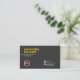 An elegant card made for the boss in you. A simple black background. A white thin demarcation line shoots out from the card's upper left wall. It captures your name in yellow. For aesthetic purposes, your name is made oversize and divided into two portions. Directly underneath, is your job title. Southwards, you can see your logo near the base. Nearby, all your contact details are properly stored alongside the respective social media icons. Overleaf, there is another logo at the top, followed by the business name, its URL and a slogan option for you to personalise your card. This is a strong simple bold card, made for all C E Os and the entrepreneur boss in you.