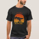 Unleash prehistoric power with a splash of vintage flair. This bold graphic features a fierce Tyrannosaurus rex silhouetted against a retro sunset of warm, nostalgic hues—bringing together Jurassic muscle and 1980s esthetic in one unforgettable design. Whether you're a dino enthusiast, a lover of throwback style, or just someone who likes their fashion with bite, this piece is made to roar.