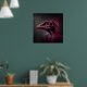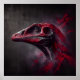 An abstract portrait showcasing the head of an extinct dinosaur. Painted with red and charcoal colours in an artistic style, this captivating artwork unfolds against a dark shady background. Witness the beauty in the mysterious echoes of the past in this very captivating piece.