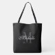 Extra large big black tote bag with chic monogram. Elegant monogrammed shoulder bag for shopping, groceries, office, books, sports, wedding and more. Classy black and white typography design template. Double sided all over print with black handles. Chic Birthday gift ideas for women.