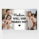 Extra large "Will you marry me?" banner featuring 2 photos and grommets to hang it outside (indoor option available too). Personalized it and add a name to create a memorable moment they'll never forget. Perfect for a sweet surprise or a big reveal.