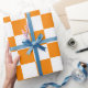 A wrapping paper designed with an orange and white chequered pattern in extra large size. You can change the orange for a different colour.