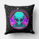 Neon psychedelic art depicting an alien and flying saucer. Generative content.