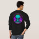 Neon psychedelic art depicting an alien and flying saucer. Generative content.