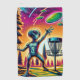 Colourful Extraterrestrial alien being throwing disc golf colourful ai art.