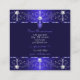 Make a lasting impression with this luxurious and elegant business card design featuring fine filigree ornate ornaments with diamonds and sparkling stars. The borders are shimmery royal blue with a dark blue background.