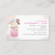 A business card featuring an illustration of a pink milkshake topped with whipped cream, sprinkles, cupcake, lollipop, cake pop, and candy. Personalise the text on front and back.