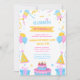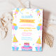 the design shows a birthday invitation for kids in yellow, sky blue and pink in the middle and lots of balloons, birthday caps,birthday gifts etc around it. this design is extremely colourful and cute and will be ideal for any kids.