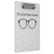 Eyeglasses theme business clipboards with eyeglass pattern lightly printed in the background and a dark pair and company name you can replace with your own business name or professional name in its place. Created for an Eye Doctor, eye care centre, or Optometrist.