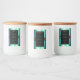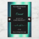 The design features a noble shimmering teal frame with fine decor lines, on a plain black background.