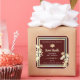 Make a lasting impression with this elegant floral design featuring pretty flowers with a double square gold frame on a burgundy background.