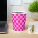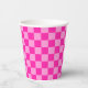Bright pink and light pink chequerboard pattern. The alternating squares create a vibrant and lively visual effect. Symmetrical and repetitive design.