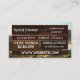 Eye catching business card featuring your own photo (optional) with a lay-over rustic grunge design. The panels are each having a different background, some have a wood texture, others a leather or metal style. On the back is an option to add a custom QR code. Great for a handyman, carpenter, or other purposes.