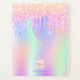 A trendy iridescent coloured background with unicorn and rainbow pastel colours in pink, purple, mint green. Decorated with drips in pink, purple and purple eye lashes. An appointment planner for makeup artists, hair designers, hair and beauty salons. Purple coloured letters.