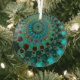Eye of Chameleon Teal Abstract Fractal Mandala Glass Tree Decoration