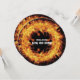 Golden yellow flames burning in and in the dark, forming a circular eye of fire, religious mystery, retro pattern