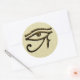 The Eye of Horus or the "Utchat" or "Udjat" (sound eye) is a powerful symbol which was believed to offer protection against the "Evil Eye". Horus's right eye is the "Eye of Re" (the sun god) and his left eye is the "Eye of Horus" (and symbolic of the moon). In a battle to avenge Horus's father, Osiris, the god Set plucked out Horus' eye. It was later restored and made whole by Thoth. The udjat was painted on ships and other items needing protection. Jewelled Eyes of Horus were set into sarcophagi to promote vitality in the afterlife. It was also worn to promote health and vitality. The pharmacist's symbol for prescription, "Rx," is derived from this design.