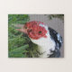 Spend together time with family or friends working on a jigsaw puzzle. Enjoy this custom design features an eye-to-eye close up photograph of the bowing head of a black, white, and red Muscovy duck feeding in long blades of cut green grass. Click customise to add text in a typeface style, size, and colour you prefer. Photo ©Patricia AZ Phillips