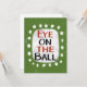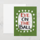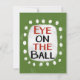 "Eye On The Ball" is a cute text design in light green with black and red text, along with a white accent shape and white textured whimsical dots surrounding it.