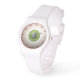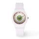 Here's a watch design that is sure to get looks....one way or another. The watch face design is a green eye with red hour markers. Now when you look at your watch, your watch looks back at you. Available in various styles and colours. You choose.