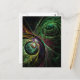 Eye to Eye Modern Fractal Green Gold Abstract Art Postcard