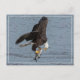 A bald eagle and the fish in it's talons lock eyes just after the capture.