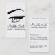 Business card with a drawing of eye with long lashes and eyebrows of female face in white and black. Perfect for your company promotion. Suitable for make-up artists, eyelash extension services, lash tinting and waxing services, brow tinting services, henna tattoos, permanent makeup, estheticians, beauticians, stylists, spa salon, hair and beauty salon or model agency. Customisable.