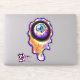 Swirls of bright rainbow colours drip from this sad crying eyeball emoji