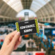 This eyecatching badge design features the message "CONFERENCE ADMIN!". It also features yellow and black coloured caution stripes. The back features a customisable event name and event date(s). [~Z0000286]