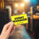 This eye-catching badge design features the message "EVENT MANAGER". A badge like this could perhaps be used to identify that the wearer is an official at an event. [~Z0000307]