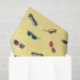 Cute summer gift or party tissue featuring colourful sunglasses and eyeglasses eyewear pattern on yellow background.