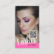 Modern networking QR code business card with 2 photos for makeup artist, hair stylish, lashes or nails extensions small business. This trendy chic cosmetologist scannable barcode business card is a good way to promote and engage with your customer by sharing more info about your business using the QR code, connect to your social media or add your logo for branding purpose.