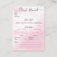 Eyelash extension client Record form Business Card. Pink watercolour background