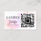 Trendy Modern Eyelash Extensions QR Code Watercolor Pink Gold Chic Luxury Business Card