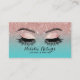 Lashes Brows Makeup Artist Teal & Rose Gold Glitter Business Cards.
